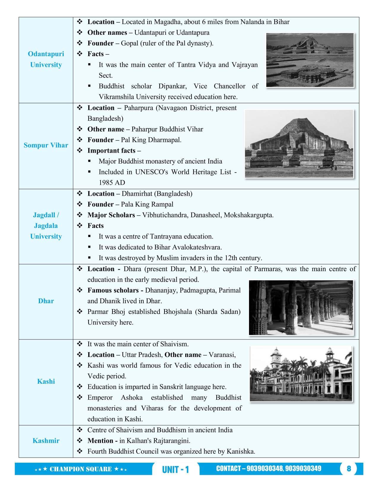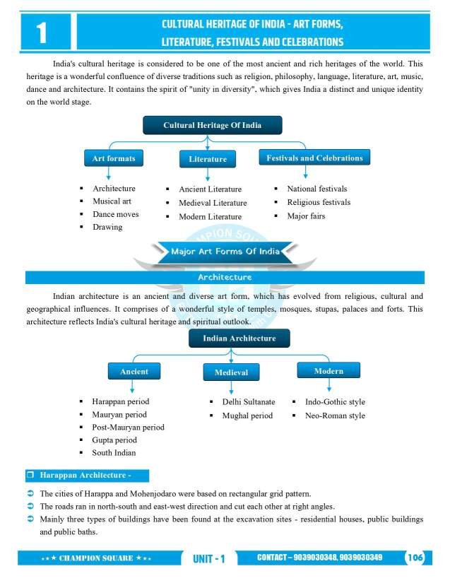 MPPSC PRELIMS – UNIT 1 (Concepts and Ideas, India’s cultural heritage) – English Medium