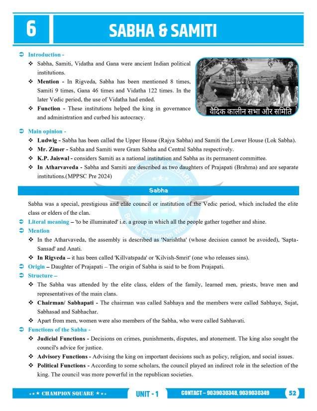 ✅ Study of early political and social concepts such as Sabha, Samiti, Gantantra, Varnashram, and Purusharthas