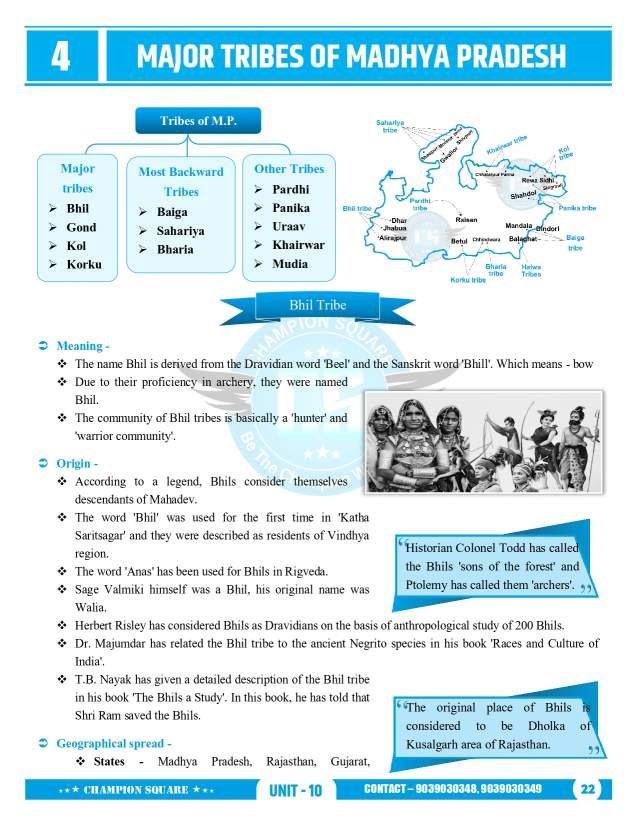 MPPSC PRELIMS – UNIT 10 (Tribes of Madhya Pradesh) – English Medium