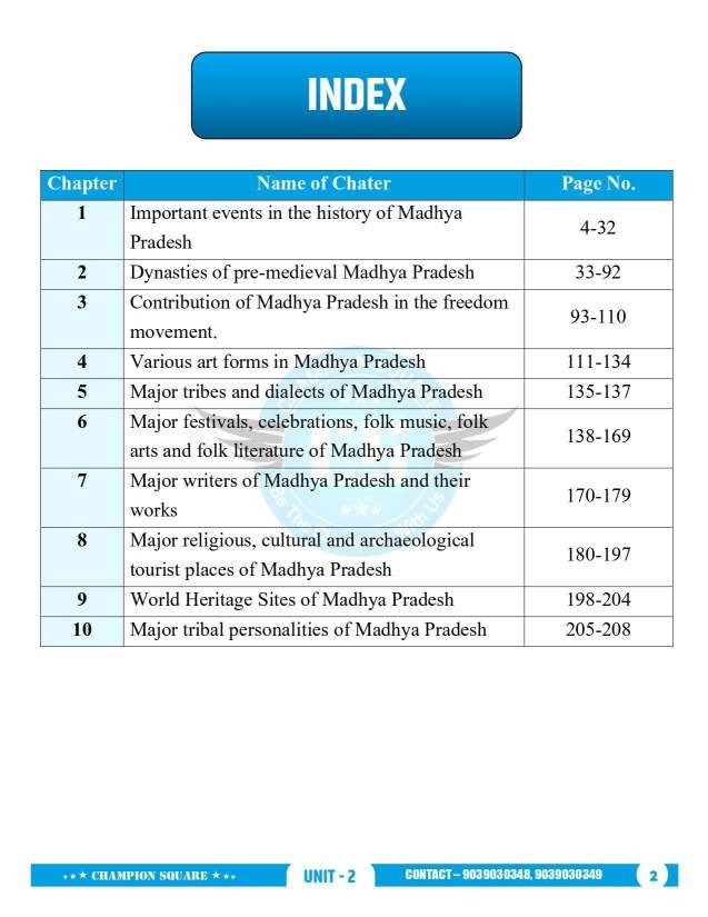 Chronological coverage of Ancient, Medieval, and Modern history of Madhya Pradesh